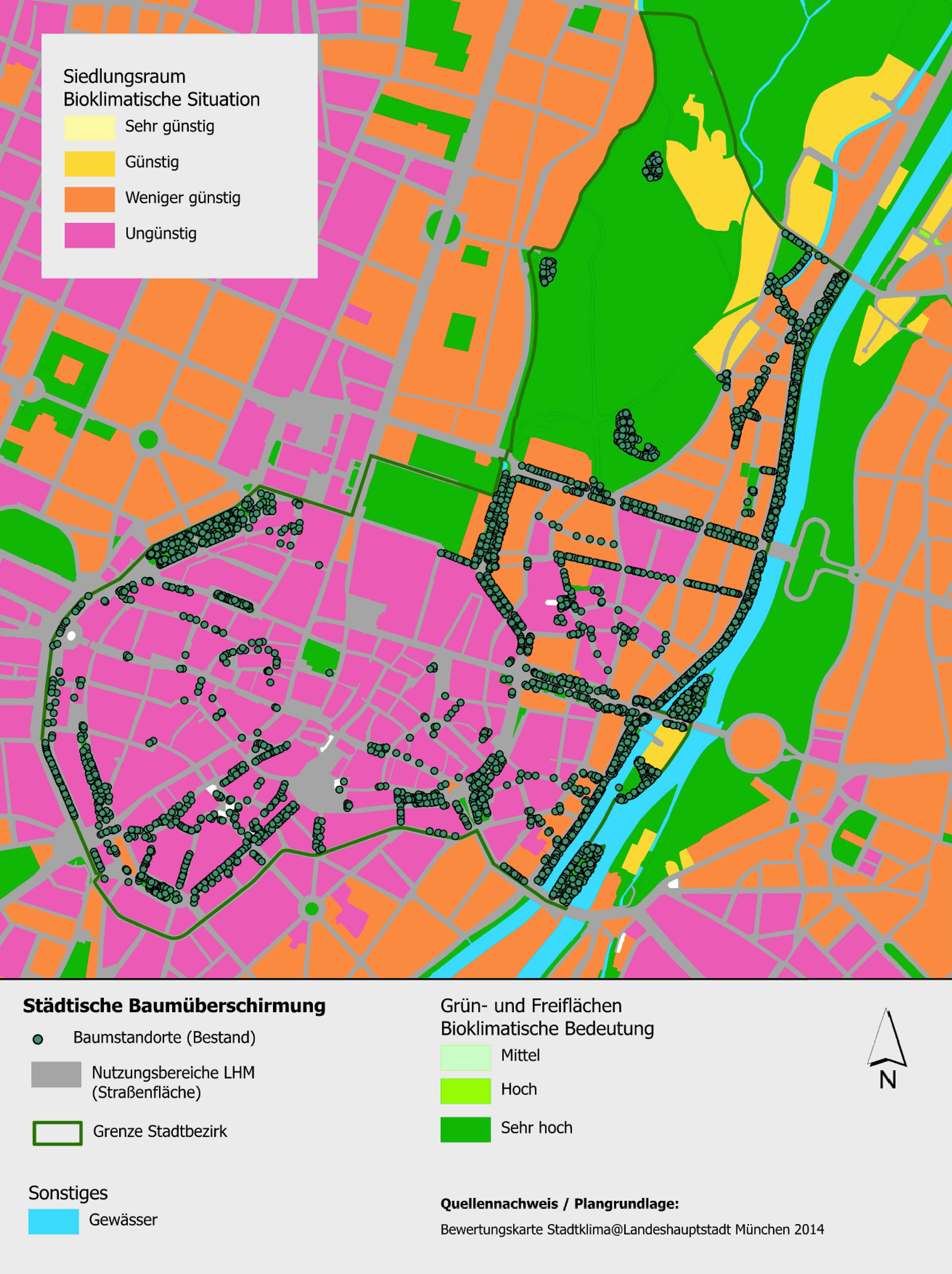 Das trifft ganz besonders auf die Münchner Altstadt und die Fußgängerzone zu. Mit mehr als 100.000 Passant*innen am Tag liegt München an der Spitze der meistbesuchten Fußgängerzonen Deutschlands. Schatten spendende Bäume gibt es jedoch sehr wenige.